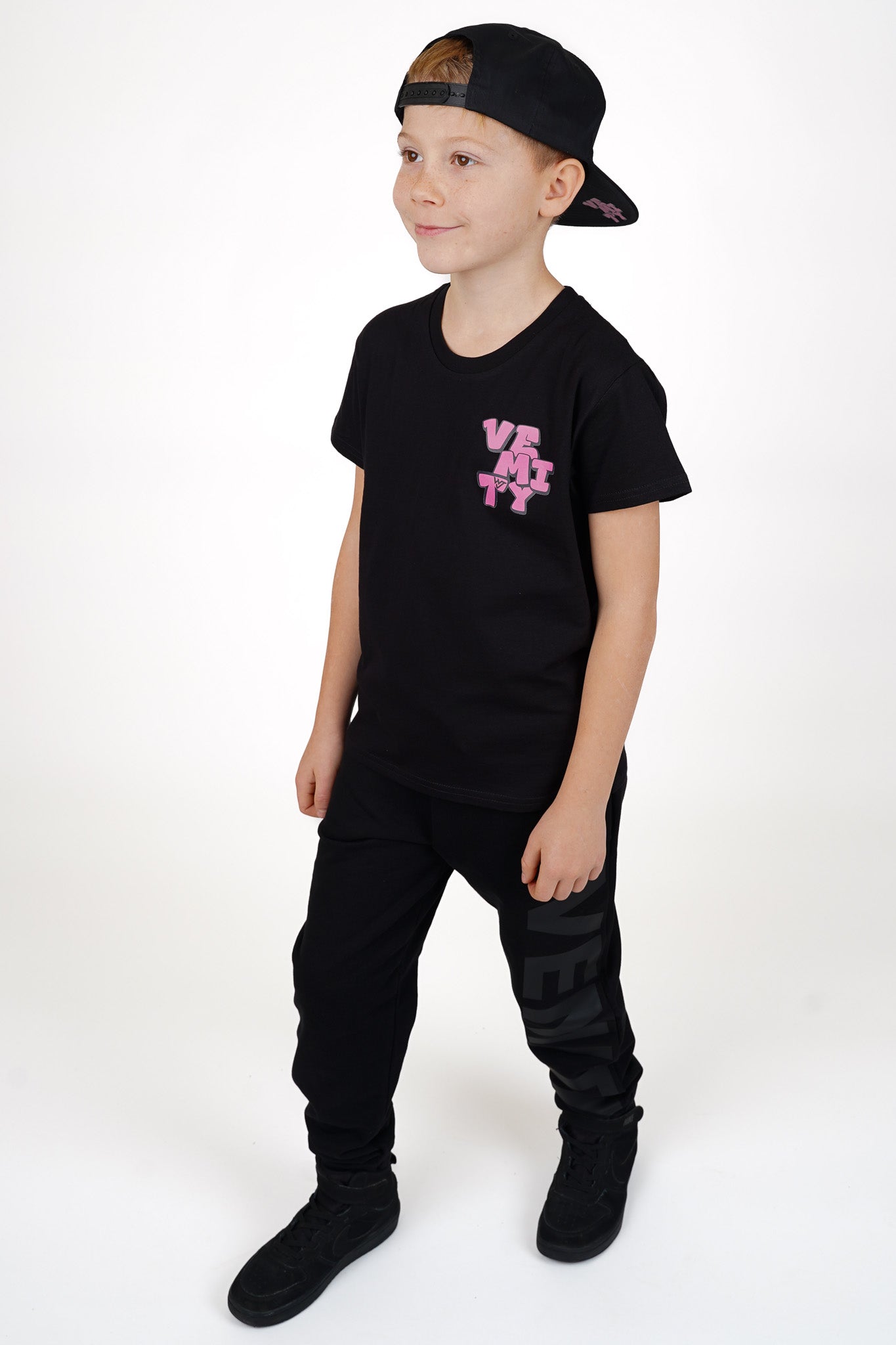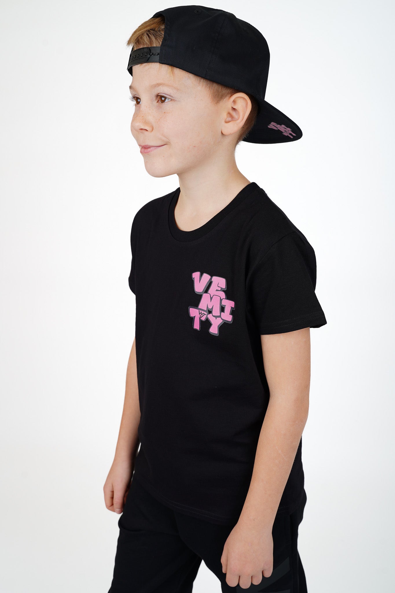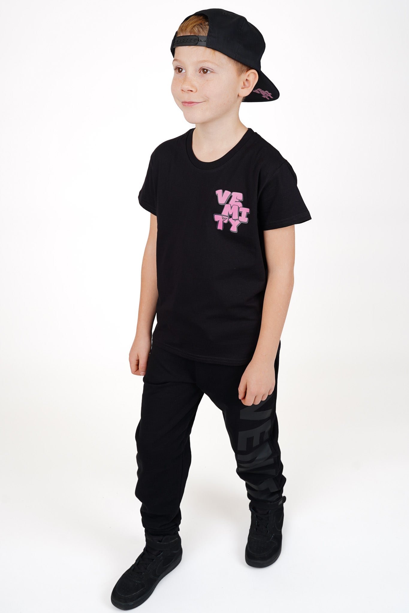 Na levé straně hrudi najdeš stylové růžové logo VEMITY v graffiti provedení, které dodává tričku unikátní charakter a dokonale doplňuje zadní design. Jemný, ale výrazný akcent, který prozradí, že tvoje dítě má styl!